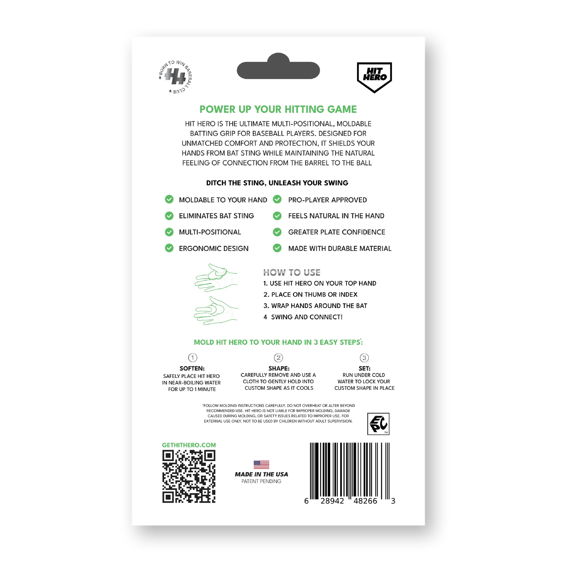 Transform your game with Hit Hero V2, the latest evolution in thumb protection and grip support. Now featuring a custom-moldable fit, V2 adapts to your hand for superior comfort, control, and confidence at the plate.